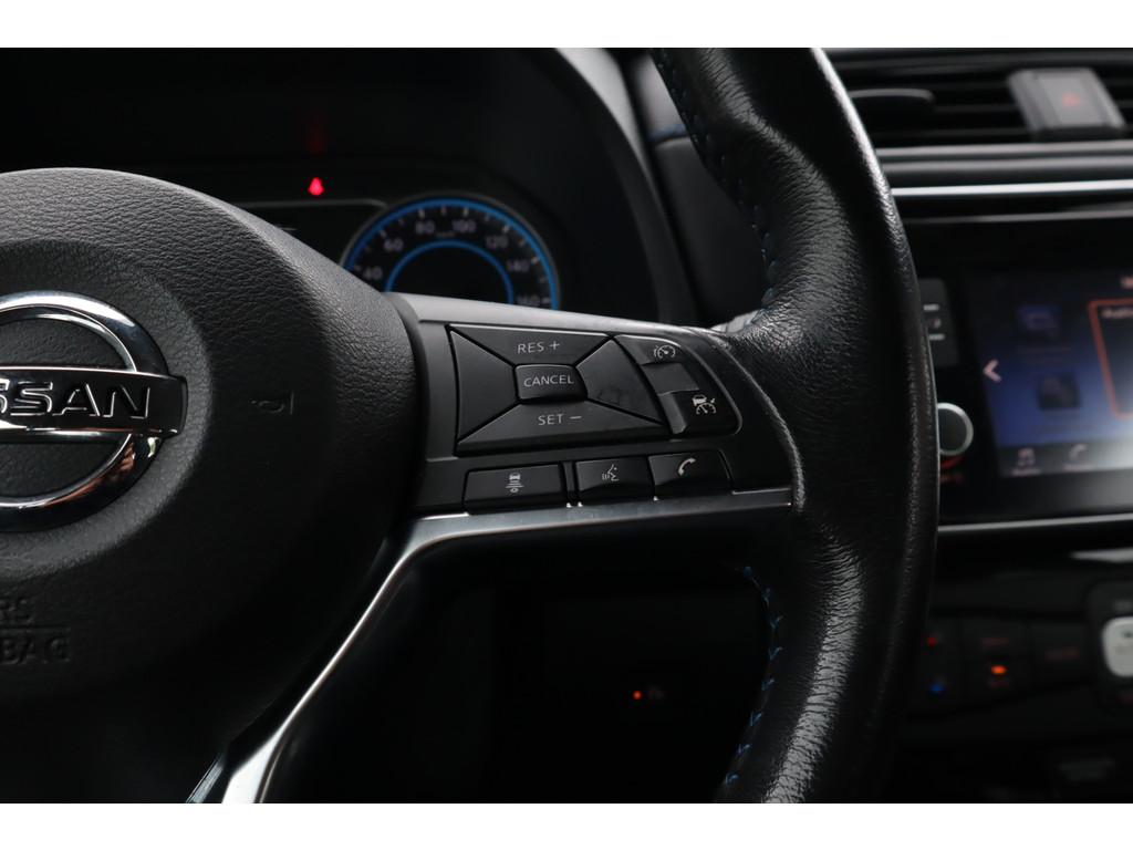 Efficiënte techniek en ongekende dynamiek. Het plezier van elektrisch rijden gaat in deze Nissan LEAF samen met een spaarzaam stroomverbruik. Met de combinatie van elektrische aandrijving en automatische transmissie manoeuvreert u soepel door het verkeer. Bij de zeer complete uitrusting van deze auto behoren ook 16 inch lichtmetalen velgen, LED-dagrijverlichting, in delen neerklapbare achterbank, LED-achterlichten, elektrisch bedienbare en verwarmde buitenspiegels en elektrisch bediende ramen.