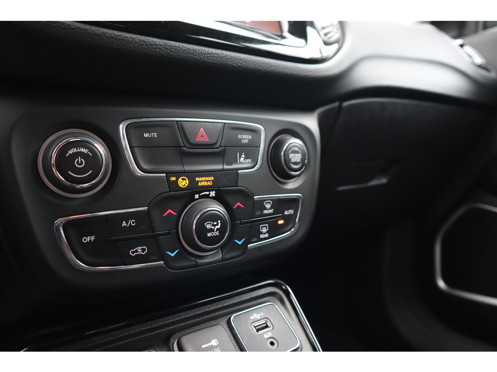 Geniet van een ruime selectie digitale radiostations met de DAB-ontvanger. Via de schakelmogelijkheden op het stuur is de audiobediening veilig en eenvoudig. Deze auto kent elke bestemming als z′n broekzak, dankzij het full map navigatiesysteem. Met de automatische airconditioning selecteert u de gewenste temperatuur. Het systeem doet de rest. Een vergeten muurtje, een verborgen paaltje? Dat gebeurt niet meer, dankzij de achteruitrijcamera. De auto neemt u werk uit handen doordat hij zelf veel in de gaten houdt. Een regensensor en een automatisch inschakelbare verlichting nemen waar wanneer de ruitenwissers en het licht aan moeten. Met de keyless start hoeft u alleen de elektronische token op zak te hebben om in te stappen en te starten. Sleutels niet meer nodig! Kilometers rijden met een exacte snelheid? Dan is de cruise control je vriend! De Jeep is standaard voorzien van: lederen versnellingspook, verstelbaar stuur en automatisch dimmende binnenspiegel.