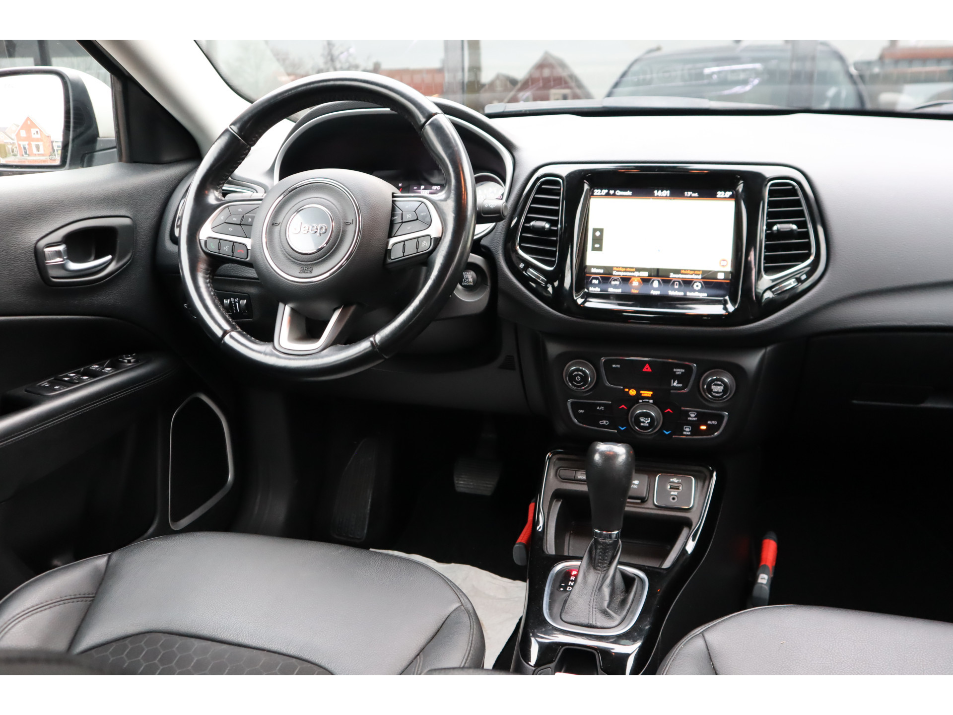Geniet van een ruime selectie digitale radiostations met de DAB-ontvanger. Via de schakelmogelijkheden op het stuur is de audiobediening veilig en eenvoudig. Deze auto kent elke bestemming als z′n broekzak, dankzij het full map navigatiesysteem. Met de automatische airconditioning selecteert u de gewenste temperatuur. Het systeem doet de rest. Een vergeten muurtje, een verborgen paaltje? Dat gebeurt niet meer, dankzij de achteruitrijcamera. De auto neemt u werk uit handen doordat hij zelf veel in de gaten houdt. Een regensensor en een automatisch inschakelbare verlichting nemen waar wanneer de ruitenwissers en het licht aan moeten. Met de keyless start hoeft u alleen de elektronische token op zak te hebben om in te stappen en te starten. Sleutels niet meer nodig! Kilometers rijden met een exacte snelheid? Dan is de cruise control je vriend! De Jeep is standaard voorzien van: lederen versnellingspook, verstelbaar stuur en automatisch dimmende binnenspiegel.