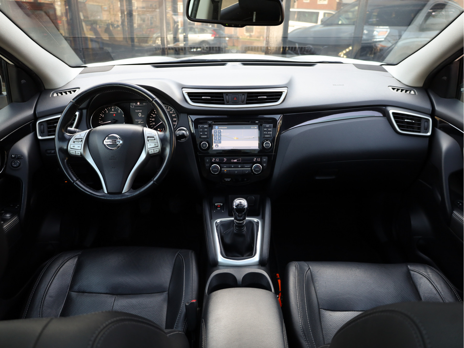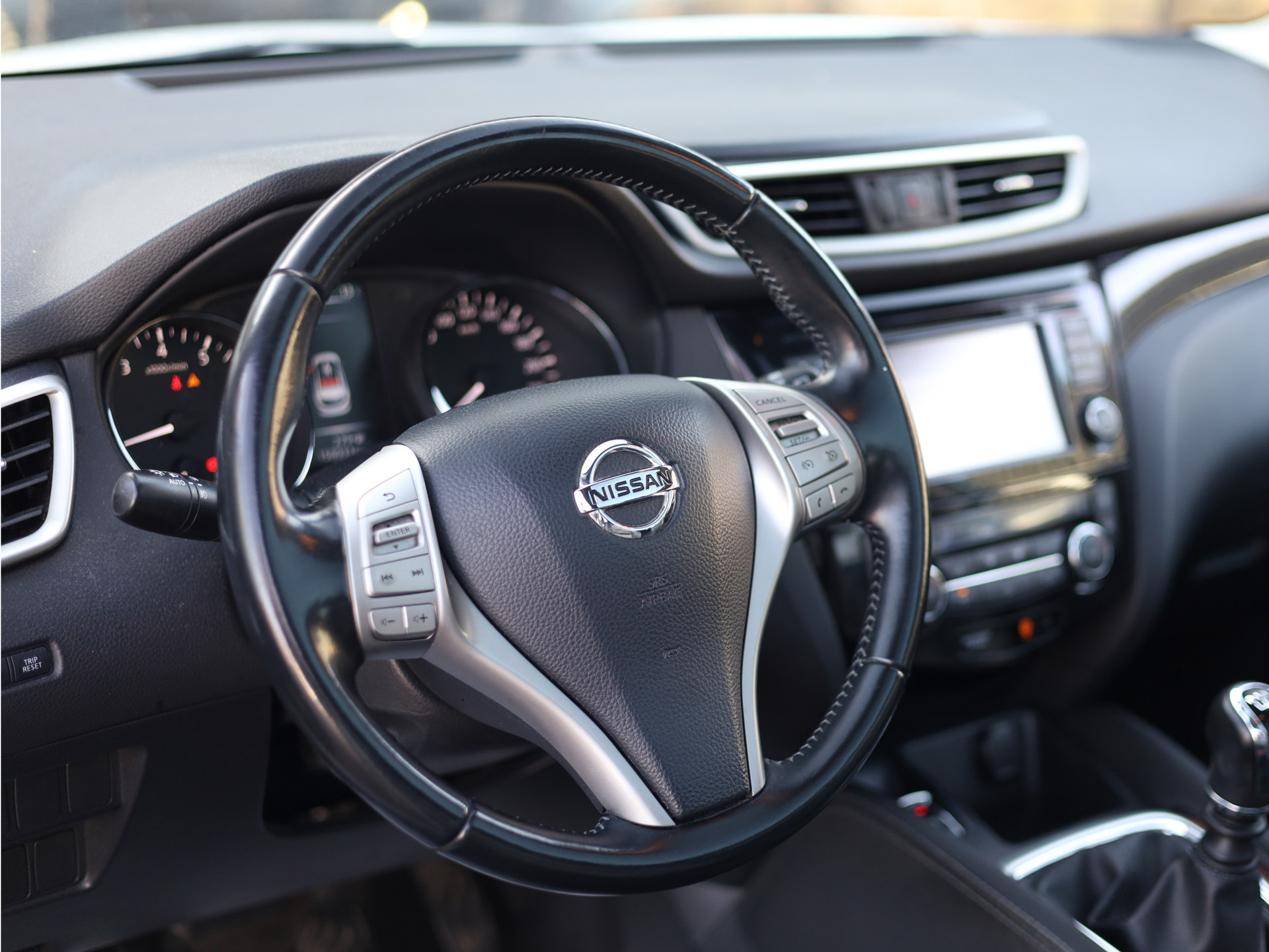 De functie van de 360 graden camera in deze auto is om u een totaaloverzicht van de omgeving te geven, ongeacht hoe smal de straat of parkeerplek is. Tot de standaard uitrusting van deze auto hoort ook automatische airconditioning. Parkeerplekken worden er niet ruimer op. Maar met de aanwezige parkeersensoren krijgt u deze Nissan Qashqai zonder problemen op z'n plaats. Het hoort bij een intelligente auto als deze dat hij zelf in staat is om zijn omgeving in de gaten te houden. Dat doet deze Nissan met een automatisch inschakelbare verlichting en een regensensor. Lekker koersen op een constante snelheid: daarvoor zorgt de cruise control. Ook navigatiesysteem, DAB ontvangst, keyless entry, automatisch dimmende binnenspiegel, lederen stuur en versnellingspook en boordcomputer horen tot de voorzieningen op deze auto.
