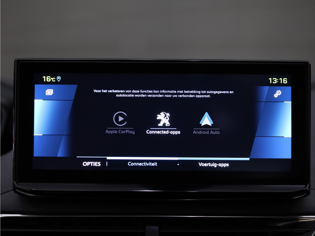 Deze auto is voorzien van een digitaal dashboard waarmee u de cockpit-interface kunt personaliseren. Elk van de vier camera's op deze auto draagt bij aan het creëren van een onbelemmerd uitzicht van 360 graden rondom de auto. Als u de adaptive cruise control inschakelt, regelt de auto zelf de snelheid en de afstand tot de auto voor u. Dankzij de spraaksturing bedient u verschillende functies zonder uw handen van het stuur te halen. Uw smartphone is tegenwoordig de sleutel tot heel veel. Ook voor deze auto. Remote services, noemen we dat. Waar u ook bent, contact houden is een eitje. Deze Peugeot is voorzien van premium audiosysteem, full map navigatiesysteem, electronic climate control, DAB ontvangst, regensensor en keyless entry.