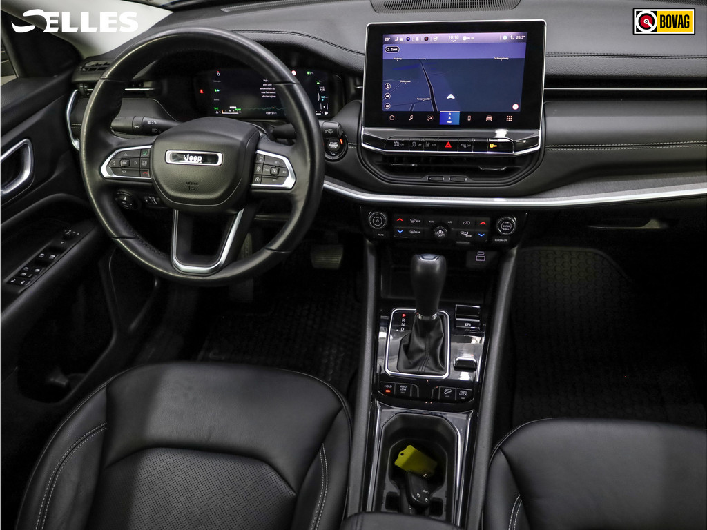 Dankzij het digitale dashboard in deze auto kan u de interface van uw cockpit personaliseren. Alles vrij achter? De achteruitrijcamera laat het meteen zien. Adaptive cruise control is een comfortabele en veilige optie. Het systeem reguleert de snelheid en houdt automatisch afstand tot uw voorligger. Connected Services zorgen ervoor dat de belangrijkste functies en data van de auto altijd en overal te checken zijn. Gewoon via de app op de smartphone. Het full map navigatiesysteem en het audiosysteem (met DAB-ontvangst!) bedient u met knoppen op het stuur. Deze Jeep is voorzien van automatische airconditioning, draadloos opladen, regensensor, keyless entry, automatisch dimmende binnenspiegel en lederen stuur.