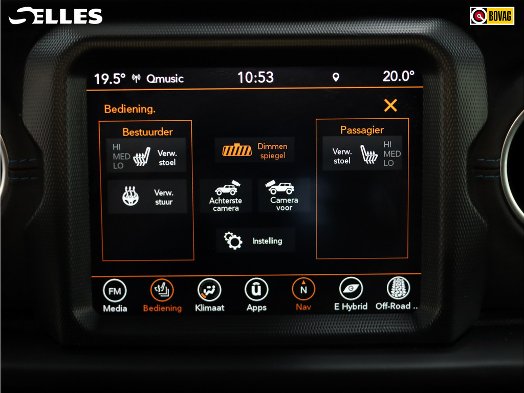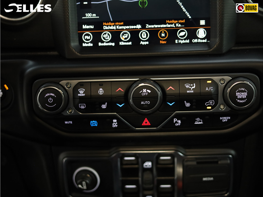 Inparkeren? Met de achteruitrijcamera heeft u er geen omkijken meer naar! Adaptive cruise control houdt de ingestelde snelheid vast en houdt automatisch afstand tot uw voorligger. Als u 'm vraagt 'hoe gaat het?' geeft deze auto zelf het antwoord. Via de app op uw smartphone. U checkt de meters waar u maar wilt, of activeert diverse functies alvast. In deze Wrangler Unlimited vindt u schakelaars op het stuur om het audio-installatiesysteem te bedienen en het navigatiesysteem. Ook is de auto voorzien van automatische airconditioning. Met keyless entry, automatisch dimmende binnenspiegel en lederen versnellingspook is deze Jeep helemaal compleet.