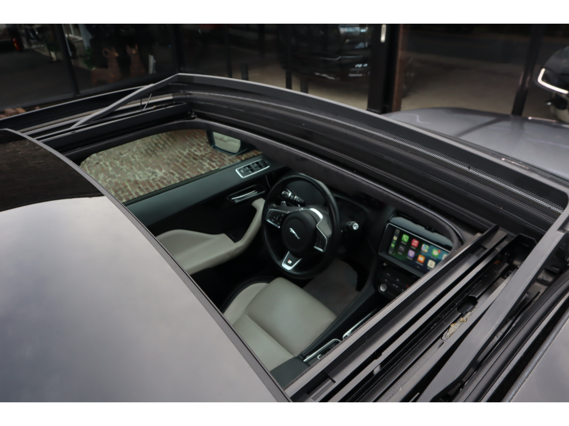 Hij is functioneel, flexibel en gebruiksvriendelijk, deze Jaguar F-PACE. U neemt er met gemak uw gezin in mee. Deze SUV wordt aangedreven door een krachtige viercilinder benzinemotor. De hoogwaardige uitstraling van deze auto wordt benadrukt door de lederen bekleding. De verwarmbare voorstoelen benadrukken nog maar eens dat we hier te maken hebben met een regelrechte verwenauto voor bestuurder en bijrijder. Wat een licht geeft dat glazen elektrisch bedienbare panoramadak. De achterklep opent automatisch met een druk op de knop. Handig als u met volle handen staat. In het donker zorgt de xenonverlichting voor een goed zicht op de weg. Ook 19 inch lichtmetalen velgen, elektrisch inklapbare buitenspiegels, in delen neerklapbare achterbank, LED-achterlichten, verstelbare lendensteunen en elektrisch bedienbare ramen achter horen tot de voorzieningen op deze auto.
