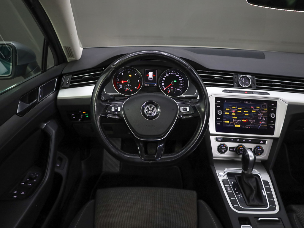 Kommaar-kommaar-kommaar, aldus de achteruitrijcamera. Iedere centimeter vrije ruimte komt haarscherp in beeld. Schadevrij inparkeren maar! Adaptive cruise control is veilig en comfortabel. De snelheidsregelaar houdt automatisch afstand tot het voertuig dat voor u rijdt. De auto is voorzien van een trekhaak en is een uitstekende caravantrekker. Voor de veiligheid op de weg is het goed dat u uw ogen op de weg kunt houden en uw handen aan het stuur. Want het audio-installatiesysteem, met DAB-ontvangst, en het navigatiesysteem met harde schijf bedient u vanaf het stuurwiel en met spraakbediening. Omdat u nu eenmaal niet overal ogen heeft, is deze Volkswagen Passat Variant voorzien van een achteropkomend verkeer waarschuwing die registreert wanneer de afstand tot uw achterligger te krap is. Natuurlijk behoren automatische airconditioning, regensensor, keyless entry, dvd-systeem, buitentemperatuurmeter en automatisch dimmende buitenspiegels ook tot de uitrusting van deze complete auto.