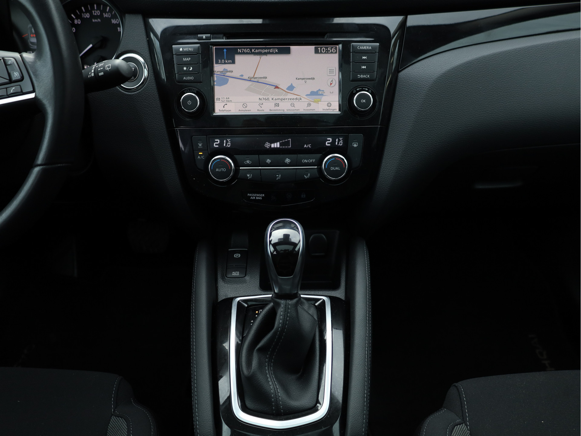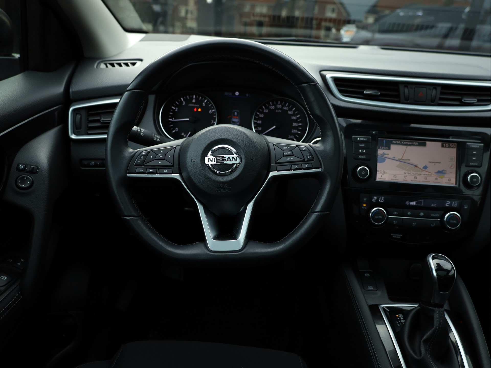 Dankzij de 360 graden camera op de auto, wordt manoeuvreren in smalle straatjes ineens veel eenvoudiger. Met spraakbediening of de knoppen op het stuur regelt u het audio-installatiesysteem en het full map navigatiesysteem, terwijl u uw blik op de weg gericht houdt. De audio-installatie biedt daarbij glasheldere ontvangst dankzij DAB-ontvangst. Het comfort wordt verhoogd door de aanwezige automatische airconditioning. Parkeersensoren zijn een waardevolle toevoeging aan deze auto. De sensoren waarschuwen tijdens het parkeren en voorkomen schade aan de auto. Achter het stuur van deze Nissan bent u niet alleen. De auto kijkt als het ware met u mee tijdens de rit. De regensensor schakelt de ruitenwissers in als het nodig is en de automatisch inschakelbare verlichting doet de lichten voor u aan. Ook is de Nissan uitgerust met: cruise control, keyless entry, automatisch dimmende binnenspiegel, lederen stuur en versnellingspook en boordcomputer.