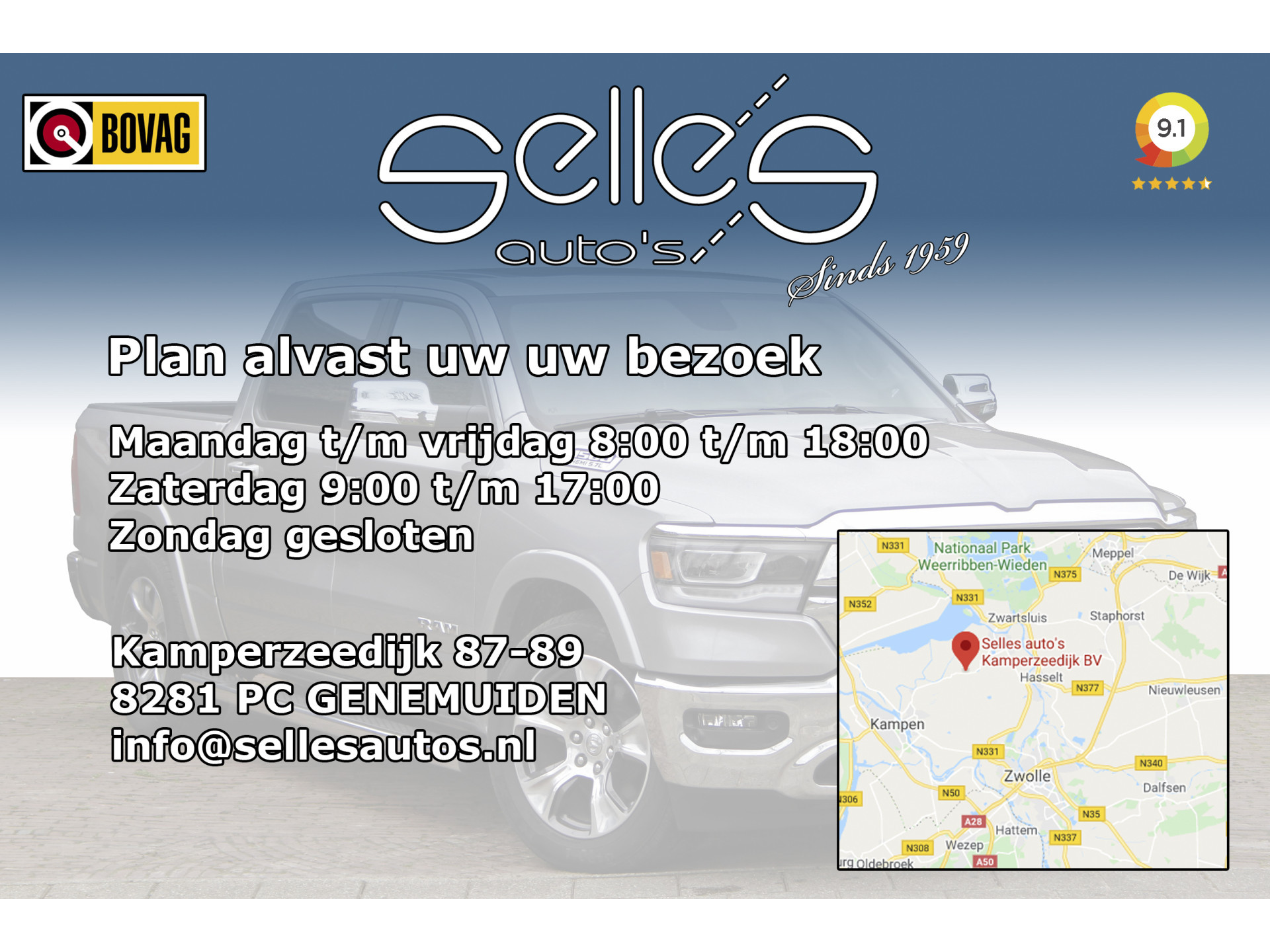 Fabrikant: Selles Auto's Kamperzeedijk B.V. Kamperzeedijk 87- 89 8281PC GENEMUIDEN, NL 0383446161 http://www.sellesautos.nl verkoop@sellesautos.nl