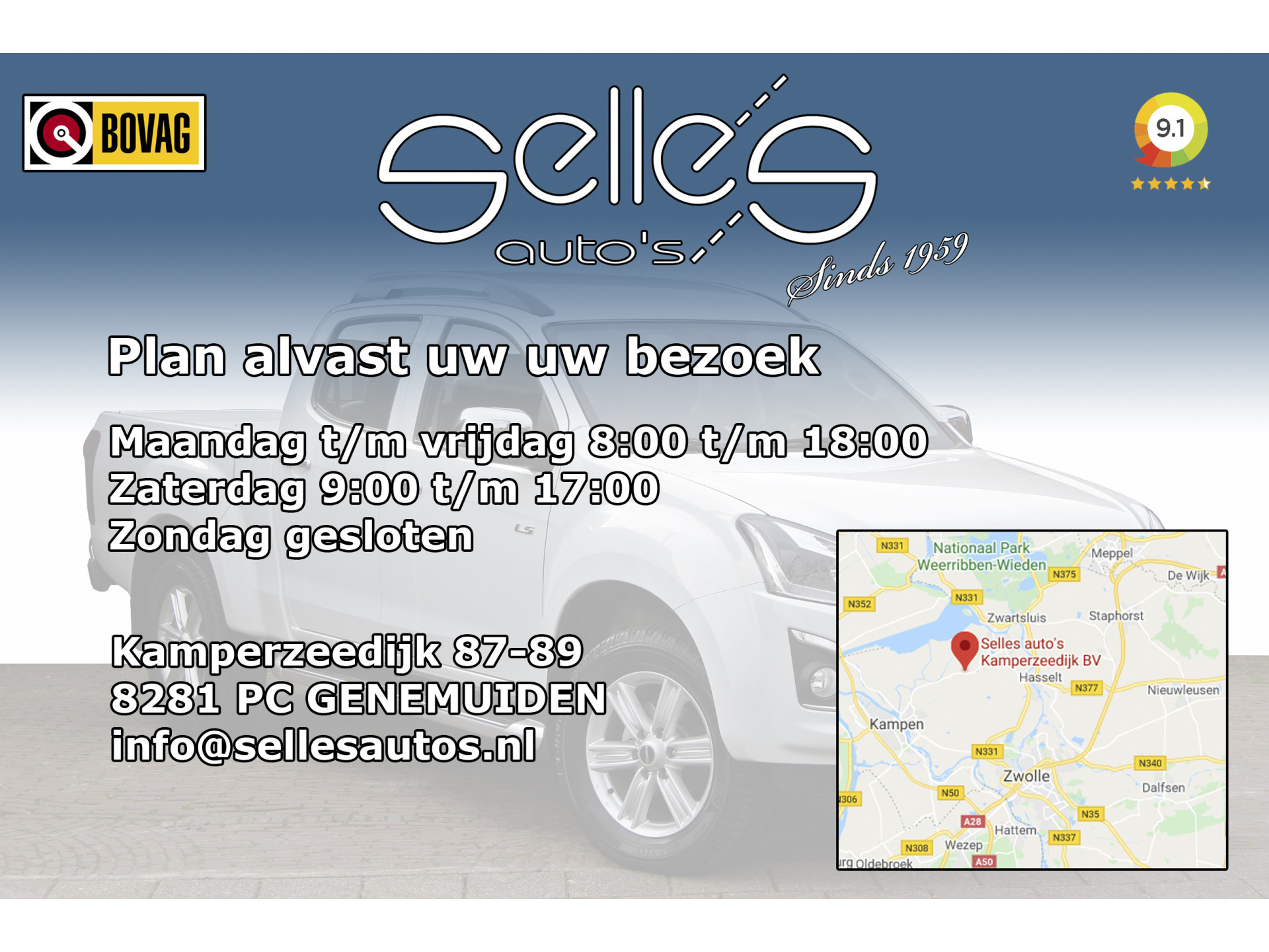 Fabrikant: Selles Auto's Kamperzeedijk B.V. Kamperzeedijk 87- 89 8281PC GENEMUIDEN, NL 0383446161 http://www.sellesautos.nl verkoop@sellesautos.nl