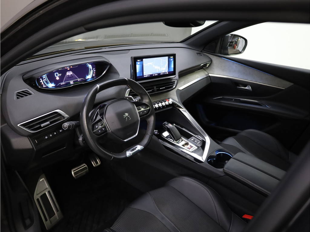 Deze auto is voorzien van een digitaal dashboard waarmee u de cockpit-interface kunt personaliseren. Elk van de vier camera's op deze auto draagt bij aan het creëren van een onbelemmerd uitzicht van 360 graden rondom de auto. Als u de adaptive cruise control inschakelt, regelt de auto zelf de snelheid en de afstand tot de auto voor u. Dankzij de spraaksturing bedient u verschillende functies zonder uw handen van het stuur te halen. Uw smartphone is tegenwoordig de sleutel tot heel veel. Ook voor deze auto. Remote services, noemen we dat. Waar u ook bent, contact houden is een eitje. Deze Peugeot is voorzien van premium audiosysteem, full map navigatiesysteem, electronic climate control, DAB ontvangst, regensensor en keyless entry.