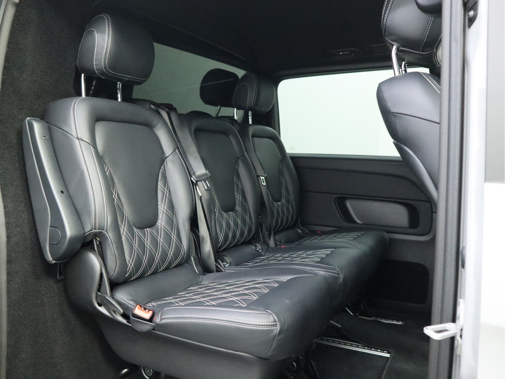 Van uw nieuwe auto verlangt u rijplezier, maar ook optimaal comfort en veiligheid. Daarom is de Mercedes-Benz V-klasse de auto die u zoekt. Met een viercilinder dieselmotor en een automatische transmissie beschikt deze Mercedes-Benz over uitstekende prestaties. Ze zeggen weleens dat stijlvol en handig niet gauw samengaan. In dit geval wel: kijk maar naar het lederen interieur en de elektrisch bedienbare achterklep. Relaxt rijden? Dan zijn de comfortstoelen een regelrechte extra. Passagiers stappen gemakkelijk in en uit door de schuifdeur met z'n ruime opening. Tot de uitrusting behoren ook 17 inch lichtmetalen velgen, LED-koplampen, adaptief dempingsysteem, warmtewerend glas, LED-achterlichten en verstelbare lendensteunen.