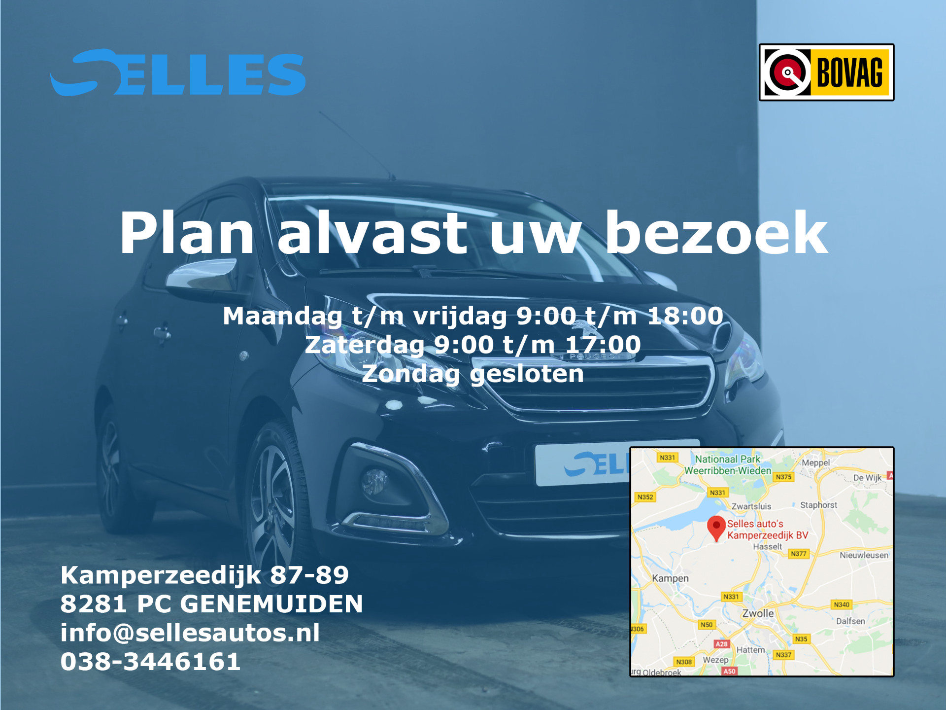 Fabrikant: Selles Auto's Kamperzeedijk B.V. Kamperzeedijk 87- 89 8281PC GENEMUIDEN, NL 0383446161 http://www.sellesautos.nl verkoop@sellesautos.nl