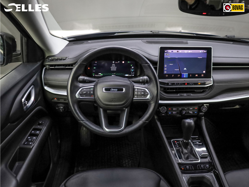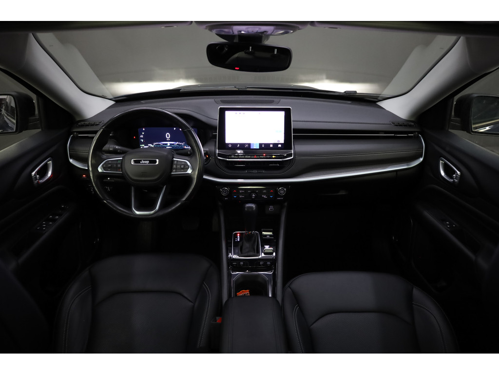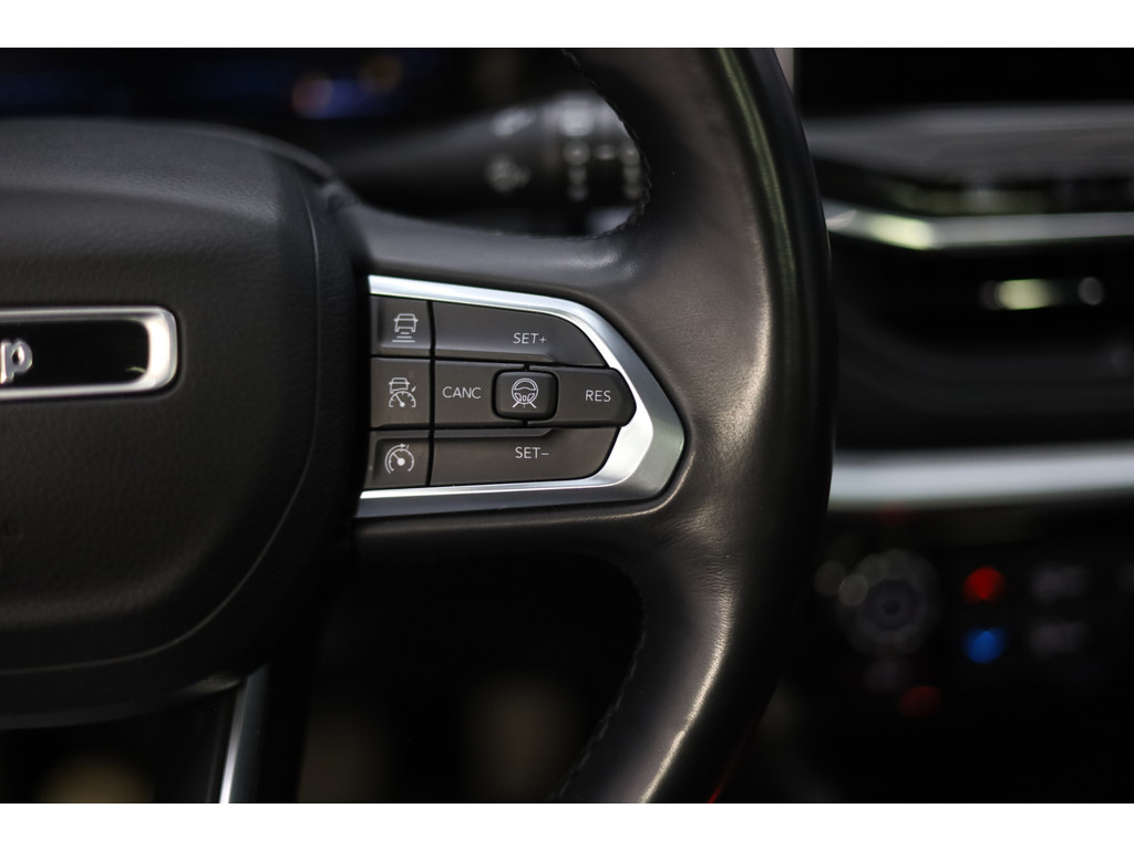 Dankzij het digitale dashboard in deze auto kan u de interface van uw cockpit personaliseren. Alles vrij achter? De achteruitrijcamera laat het meteen zien. Adaptive cruise control is een comfortabele en veilige optie. Het systeem reguleert de snelheid en houdt automatisch afstand tot uw voorligger. Connected Services zorgen ervoor dat de belangrijkste functies en data van de auto altijd en overal te checken zijn. Gewoon via de app op de smartphone. Het full map navigatiesysteem en het audiosysteem (met DAB-ontvangst!) bedient u met knoppen op het stuur. Deze Jeep is voorzien van automatische airconditioning, draadloos opladen, regensensor, keyless entry, automatisch dimmende binnenspiegel en lederen stuur.