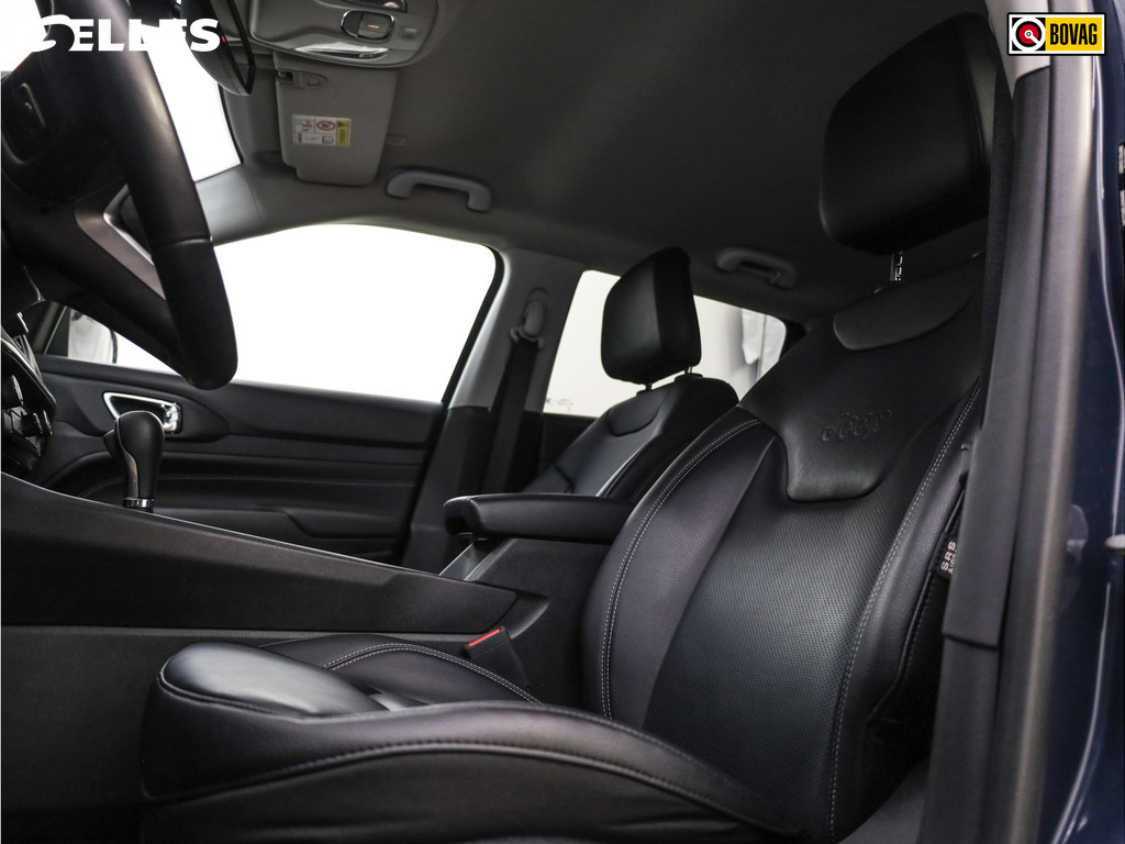 Dankzij het digitale dashboard in deze auto kan u de interface van uw cockpit personaliseren. Alles vrij achter? De achteruitrijcamera laat het meteen zien. Adaptive cruise control is een comfortabele en veilige optie. Het systeem reguleert de snelheid en houdt automatisch afstand tot uw voorligger. Connected Services zorgen ervoor dat de belangrijkste functies en data van de auto altijd en overal te checken zijn. Gewoon via de app op de smartphone. Het full map navigatiesysteem en het audiosysteem (met DAB-ontvangst!) bedient u met knoppen op het stuur. Deze Jeep is voorzien van automatische airconditioning, draadloos opladen, regensensor, keyless entry, automatisch dimmende binnenspiegel en lederen stuur.