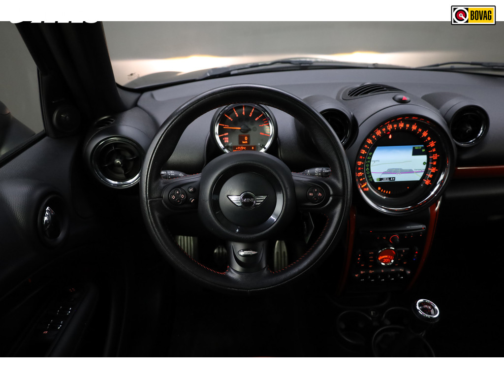 Alle technologie in de MINI Countryman is er op gericht om uw rit veilig en gemakkelijk te laten verlopen. Een viercilinder benzinemotor en een handgeschakelde zesversnellingsbak zorgen voor de uitstekende prestaties van deze auto. Het lederen interieur koestert zich in het invallende daglicht dat door het elektrisch bediend glazen panorama dak komt. En frisse lucht is een kwestie van één druk op de knop. Het kan niet op! Laat de kou maar komen! U zit altijd goed met de heerlijke stoelverwarming. Dankzij de xenonverlichting profiteert u in het donker van een krachtige en heldere lichtbundel. In deze auto profiteert u onder andere ook van: 18 inch lichtmetalen velgen, sportonderstel, halflederen bekleding, zwarte hemelbekleding, dakspoiler en sportuitlaat.