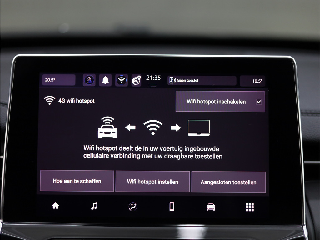 Een cockpit, een informatiecentrum... Wat is de cabine eigenlijk niet? Dankzij het digitale dashboard bent u van alles op de hoogte. Onder alle omstandigheden perfect zicht op wat zich achter de auto afspeelt: de achteruitrijcamera zorgt ervoor! Adaptive cruise control is een comfortabele en veilige optie. Het systeem reguleert de snelheid en houdt automatisch afstand tot uw voorligger. Ingebouwde spraakbediening maakt het mogelijk om de auto te bedienen zonder dat uw aandacht wordt afgeleid. Functies activeren en storingen opsporen? Bij deze auto gaat het eenvoudig via uw smartphone. Overal en altijd. Ook full map navigatiesysteem, automatische airconditioning, draadloos opladen, DAB ontvangst, regensensor en keyless entry zijn aan boord.